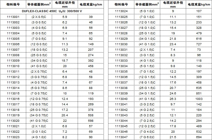 電纜規(guī)格