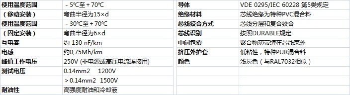 加強(qiáng)型耐油和冷卻液PUR護(hù)套柔性數(shù)據(jù)傳輸電纜