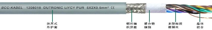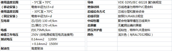 加強(qiáng)型耐油和冷卻液PUR護(hù)套柔性數(shù)據(jù)傳輸屏蔽電纜