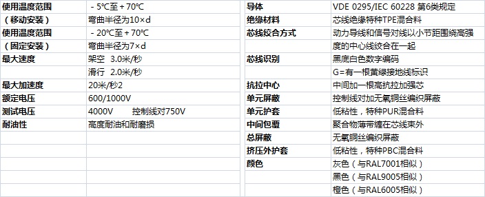 技術(shù)參數(shù)OuN拖鏈電纜-卷筒電纜-高柔性坦克鏈電纜廠家